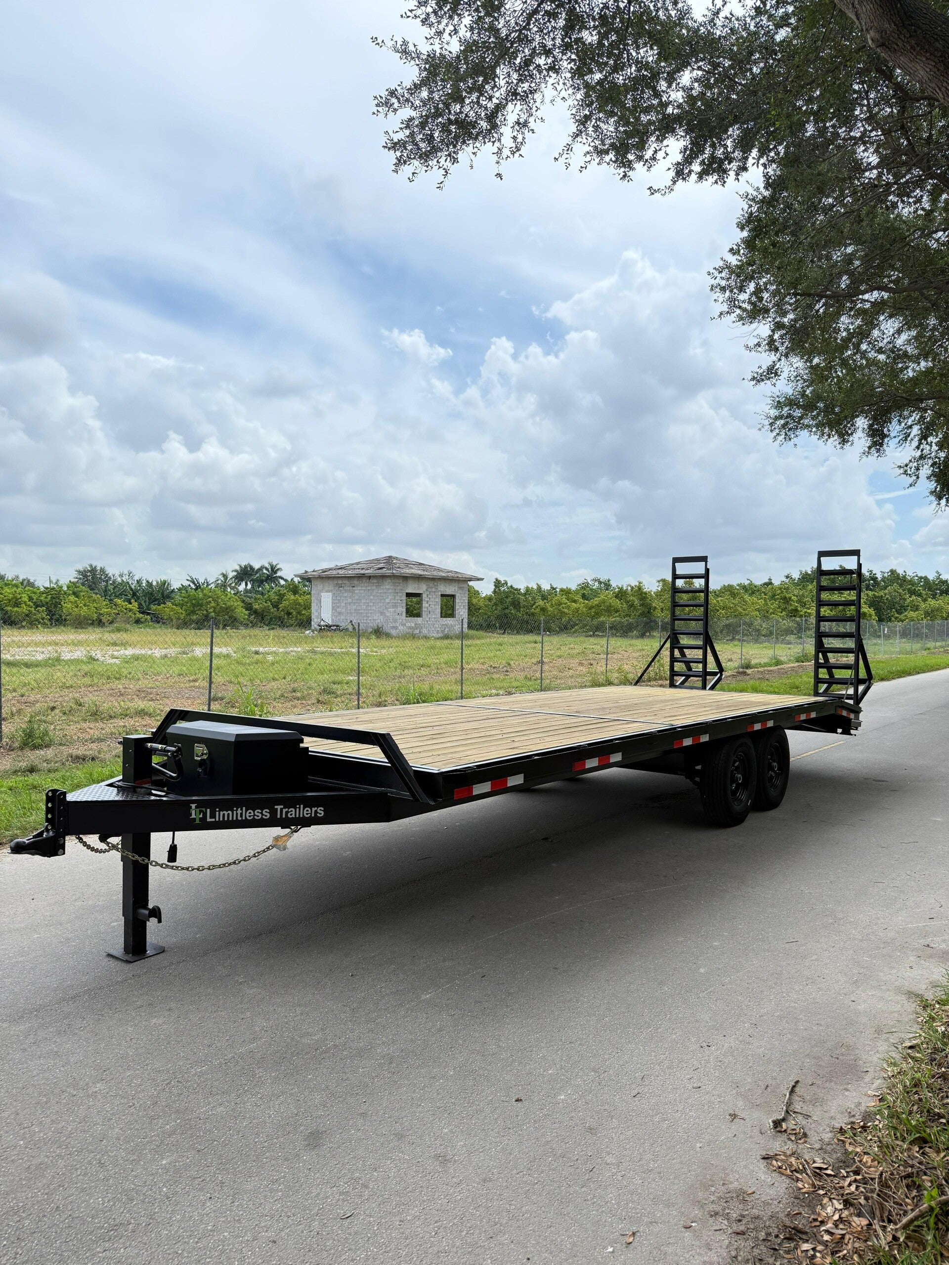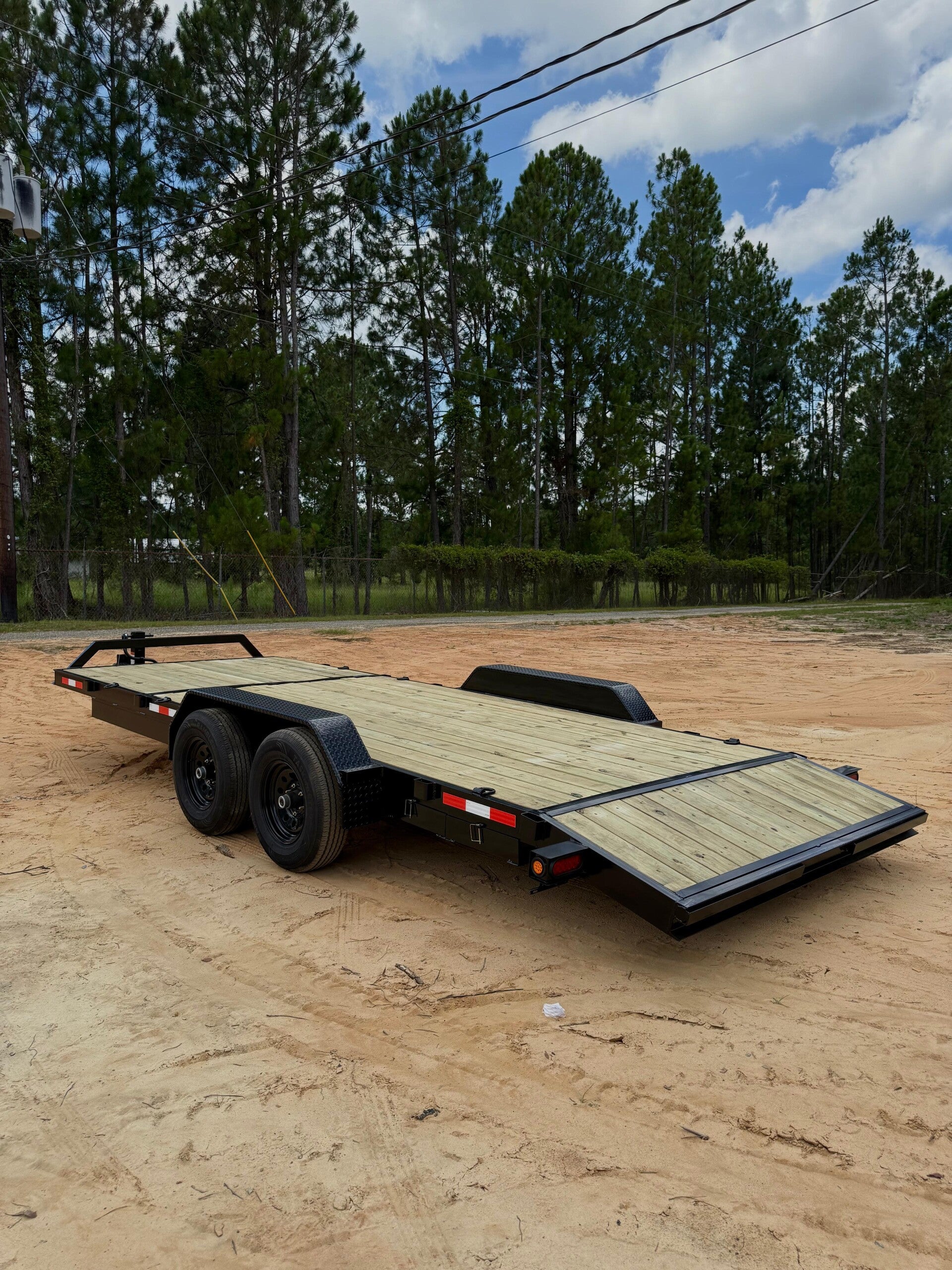Our heavy-duty Deckover trailers are engineered for maximum strength and durability. Constructed with a robust 6" C-channel steel tongue & 5" framing also reinforced with 3" C channel crossmembers, followed by a special wash where it’s then primed and painted with special top quality engineered paint, these trailers provide a solid foundation for transporting heavy machinery. The deck consists of premium 2x6 pressure-treated wood. Each trailer is equipped with high-quality LED lighting for enhanced visibility and safety. Additionally, they feature top-tier axles, couplers, fenders, jacks, 14 ply tires, chains, and other essential accessories, all backed by excellent warranty systems, to guarantee optimal